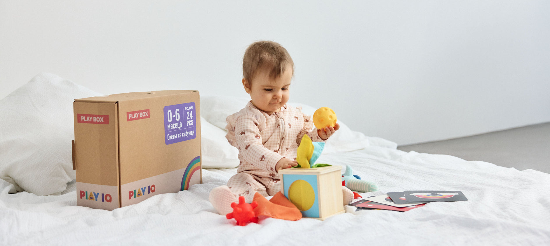PlayIQ предлага развиващи кутии за бебета от 0 до 12 месеца. Всяка кутия е разработена по принципите на Монтесори и отговаря на реалните нужди, способности и интереси на детето в конкретния период.